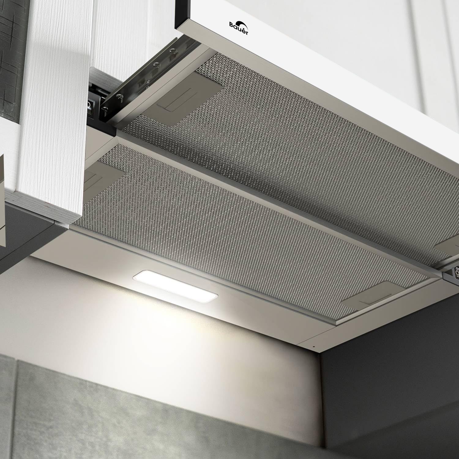 Máy hút mùi âm tủ phím bấm kính trắng 60cm Bauer BC6002I sở hữu kiểu dáng Tornado Telescopic hiện đại, sang trọng, mang đến điểm nhấn ấn tượng cho không gian bếp của bạn. Kiểu dáng này không chỉ tạo nên sự sang trọng, tinh tế mà còn giúp tiết kiệm diện tích và dễ dàng vệ sinh.