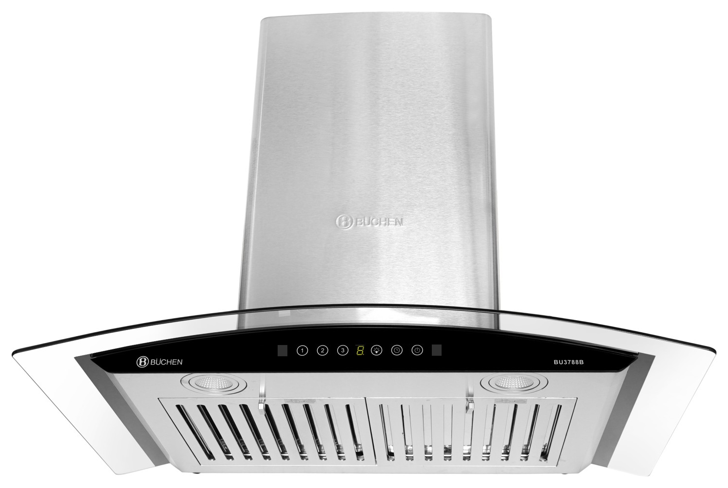 Máy hút mùi Buchen BU3788B sử dụng bảng điều khiển cảm ứng gồm 3 tốc độ hút phù hợp với lượng mùi và khói khi nấu ăn để đảm bảo sạch mùi cho không gian bếp nhà bạn. Hệ thống đèn chiếu sáng của máy gồm 2 đèn Led có tác dụng chiếu sáng và làm cho công việc nấu ăn thêm thuận lợi. Lưới lọc mỡ bằng Inox dạng thanh nan để ngăn chặn triệt để mùi, bụi lọt vào bên trong máy gây hỏng động cơ. Tấm lưới này có thể tháo rời để vệ sinh một cách dễ dàng.