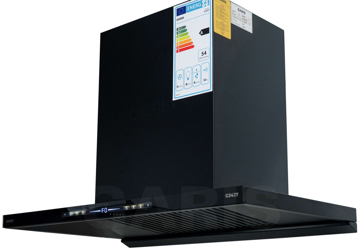 Máy hút mùi áp tường chữ T | Garis G3427 | 70cm | màu đen | hệ điều khiển cảm ứng chạm/vẫy tay tiện lợi | công suất hút cực mạnh lên tới 1200m3/h | thiết kế mặt điều khiển siêu mỏng 30mm