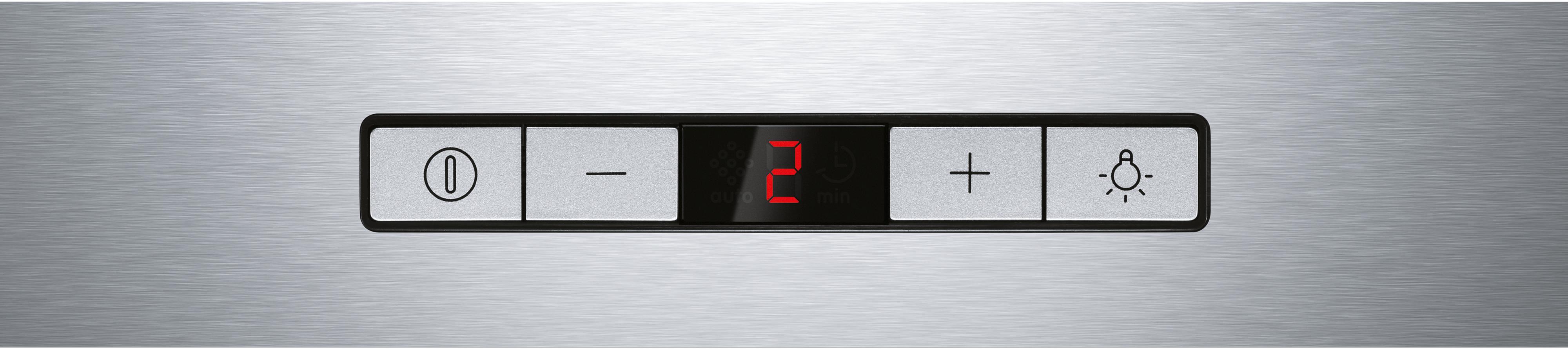 Bảng điều khiển được thiết kế dạng phím bấm điện tử với 3 mức công suất hút. Khi hoạt động, máy hút mùi Bosch DIB098E50 vận hành rất êm ái và không gây ảnh hưởng đến việc sinh hoạt của các thành viên trong gia đình. Thao tác sử dụng máy hút mùi Bosch DIB098E50 rất đơn giản dễ dàng chỉ cần kéo ra là máy hoạt động và đẩy vào là máy tắt. Người dùng có thể lựa chọn tốc độ hút phù hợp với lượng mùi và khói khi nấu ăn để đảm bảo sạch mùi cho không gian bếp nhà bạn.