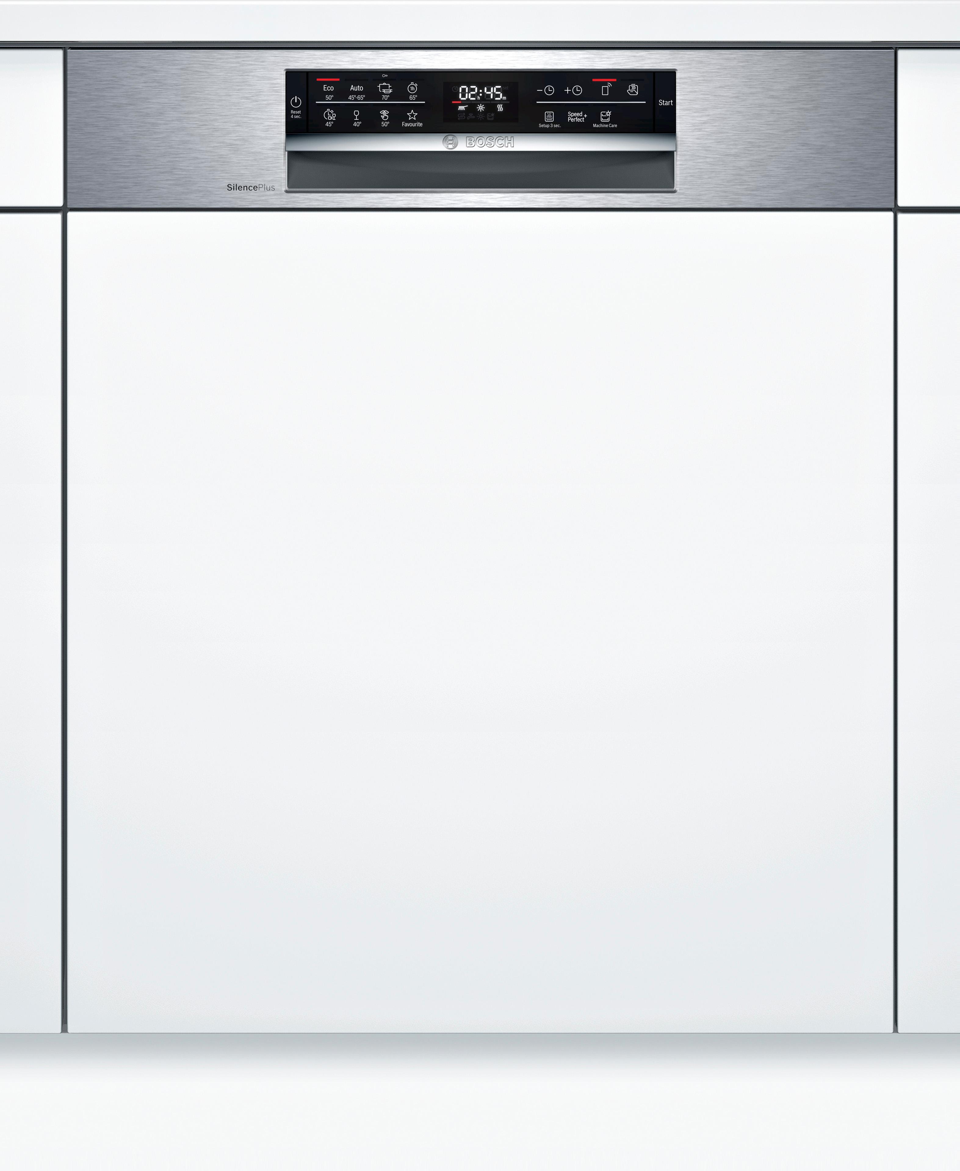 Máy rửa bát bán âm tủ | Bosch SMI6ECS93E | Serie 6 | 60cm | Inox | 13 bộ | Kết nối Home Connect | Tự động mở cửa | Làm sạch tăng cường | Sấy khô hiệu quả | Nhập khẩu nguyên chiếc từ CHLB Đức
