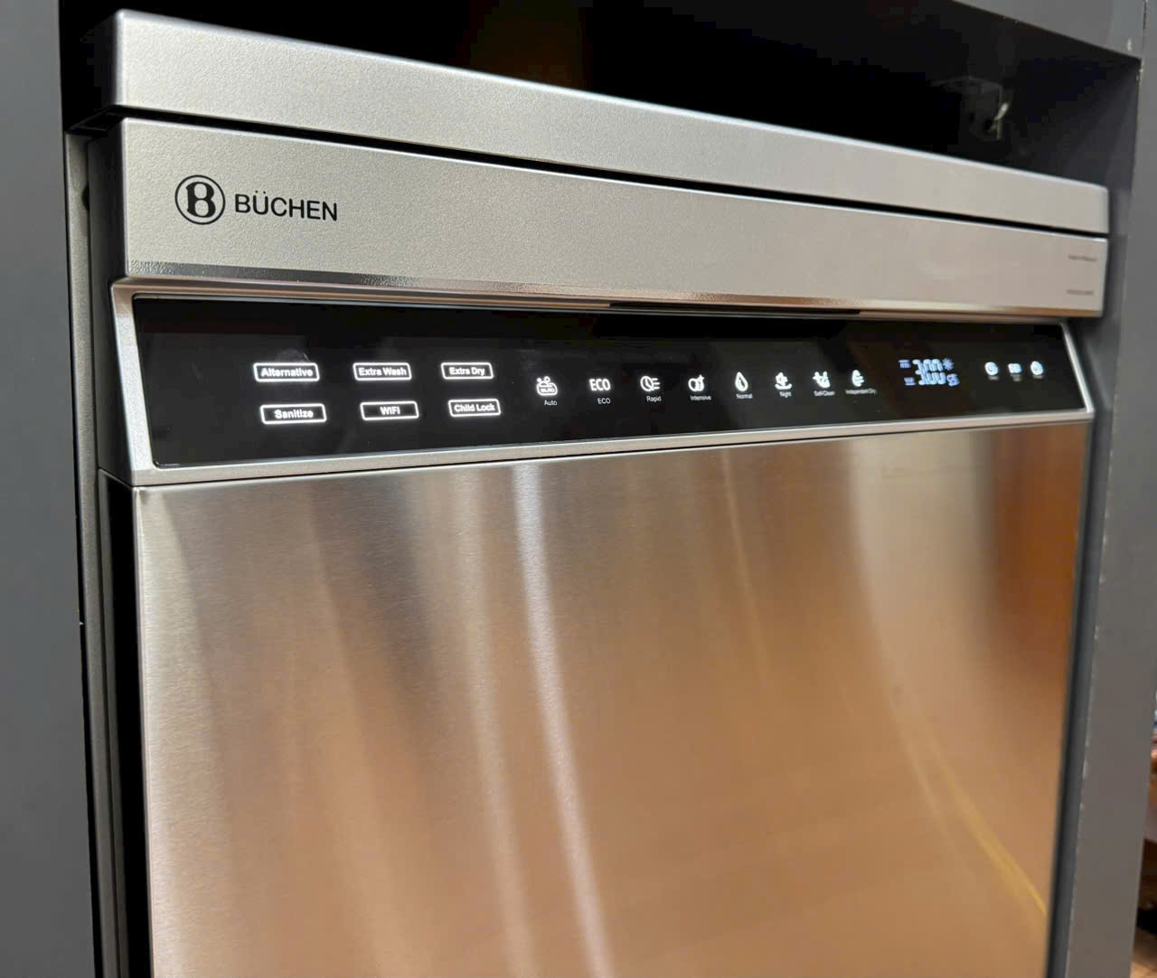 Máy rửa bát Buchen SMS80EU14MKS sở hữu hệ thống điều khiển cảm ứng toàn diện, cho phép người dùng thao tác và tùy chỉnh các chế độ rửa chỉ với một lần chạm nhẹ. Màn hình hiển thị LED sắc nét không chỉ mang đến vẻ ngoài hiện đại, mà còn hiển thị thông tin rõ ràng và trực quan, giúp dễ dàng theo dõi tiến trình rửa. Thiết kế này không chỉ tăng tính tiện lợi mà còn tạo nên trải nghiệm sử dụng cao cấp.