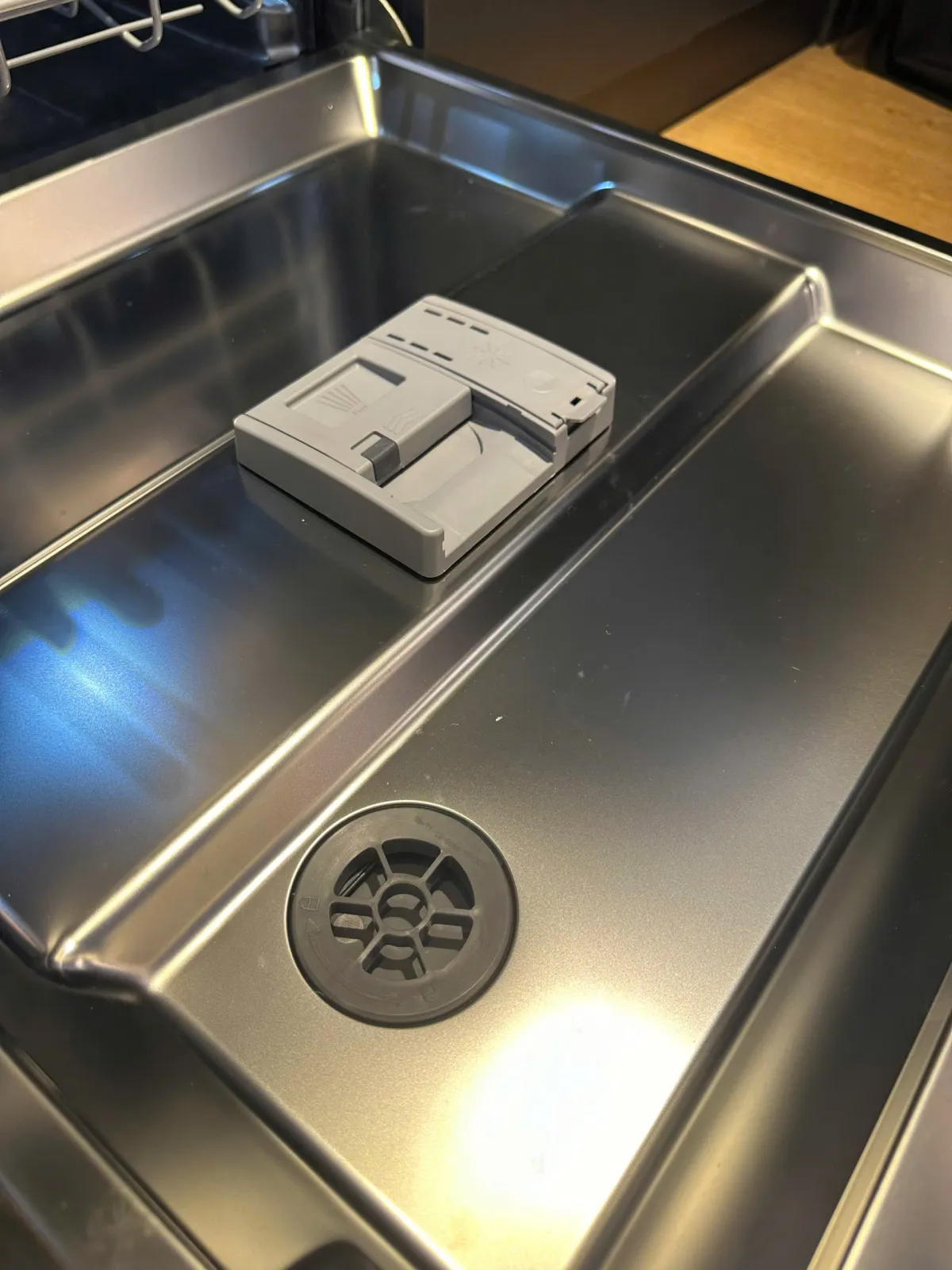 Ở phía trong bên của máy rửa bát Buchen SMS80EU14MKS có chứa ngăn chứa muối và ngăn chứa các chất rác trong quá trình rửa. Người dùng cần dùng loại muối chuyên dụng cho máy rửa bát. Mỗi lần đổ muối sẽ dùng được khoảng 1,5 tháng đến 2 tháng. Khi hết lượng muối cần thiết, máy sẽ báo hiệu ở trên bảng điều khiển.