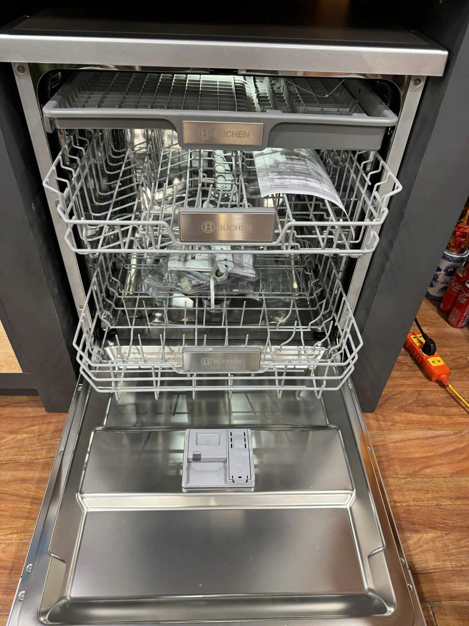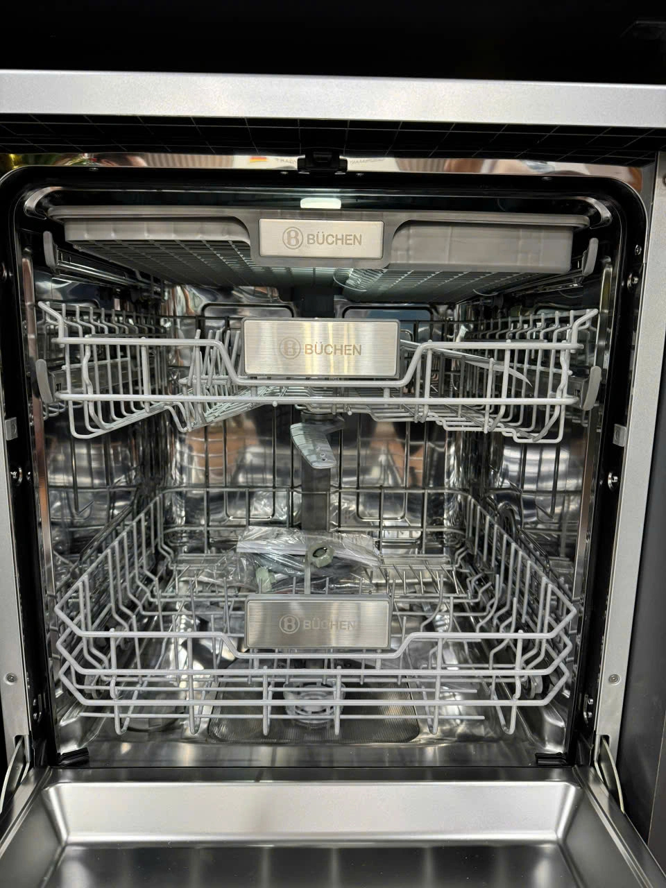 Máy rửa bát Buchen SMS80EU14MKS trang bị 3 khay chứa cơ động.