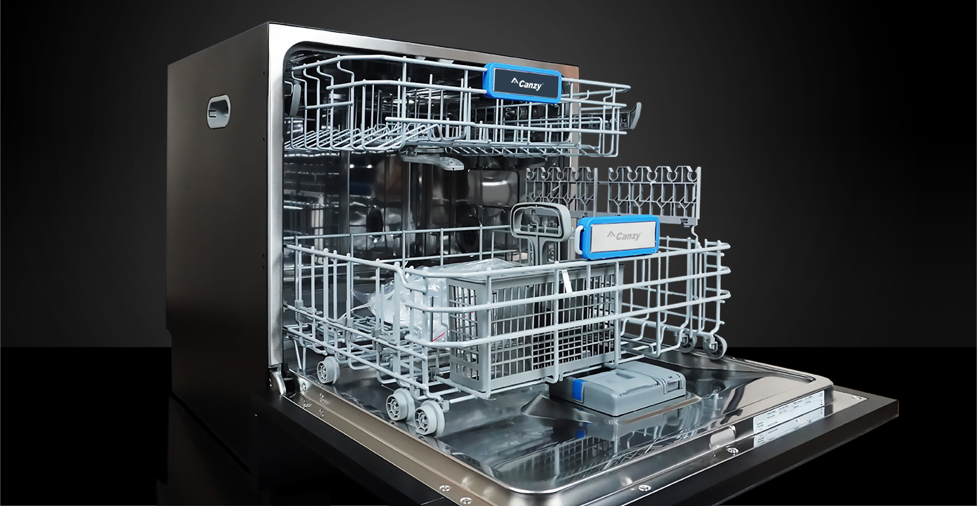 Máy rửa bát Canzy CZ-DE8B05EU có 2 khay rửa di động hay còn gọi là 2 giàn rửa bát đĩa. Khay trên là khay tiếp xúc gần sát với phần trán lắp trên của máy. Khay trên chủ yếu rửa các loại bát đĩa nhỏ, cốc, ly, vật dụng nhỏ không tốn diện tích.