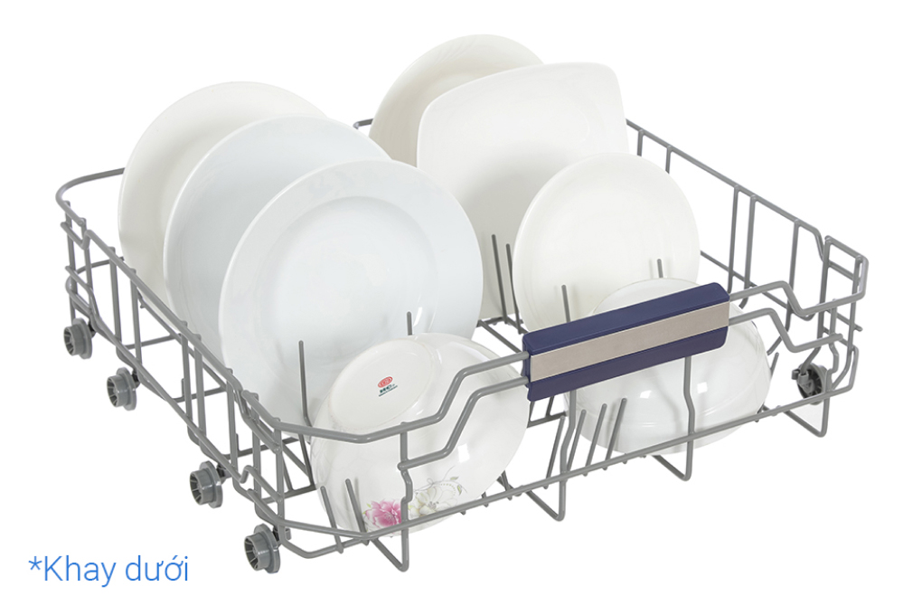 Giàn rửa dưới cùng của máy có khoang chứa rộng hơn, cho phép rửa các loại nồi nấu, chảo, bát đĩa to....