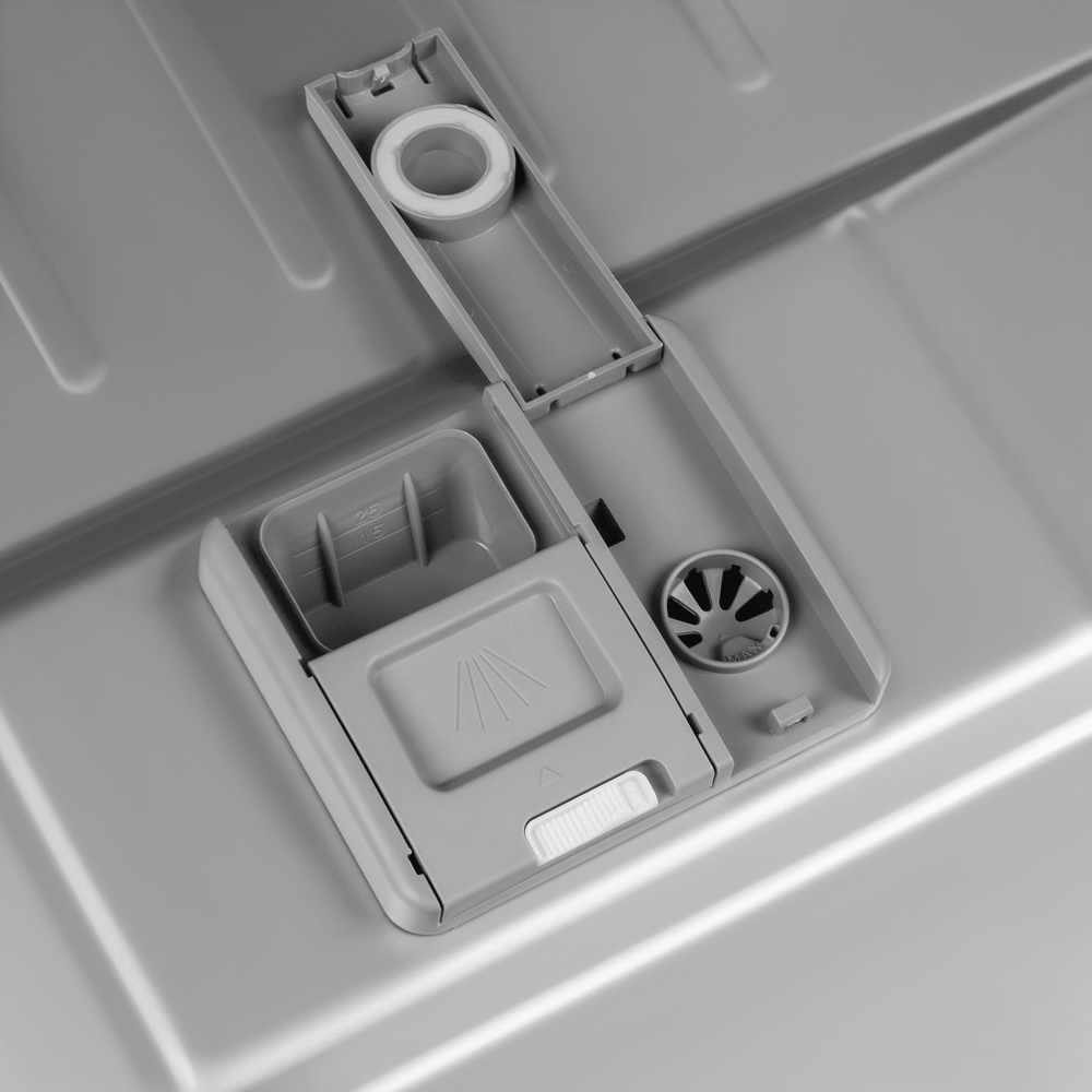 Ở phía trong bên của máy rửa bát Dandy DY-SDS489 có chứa ngăn chứa muối và ngăn chứa các chất rác trong quá trình rửa. Người dùng cần dùng loại muối chuyên dụng cho máy rửa bát. Mỗi lần đổ muối sẽ dùng được khoảng 1,5 tháng đến 2 tháng. Khi hết lượng muối cần thiết, máy sẽ báo hiệu ở trên bảng điều khiển.