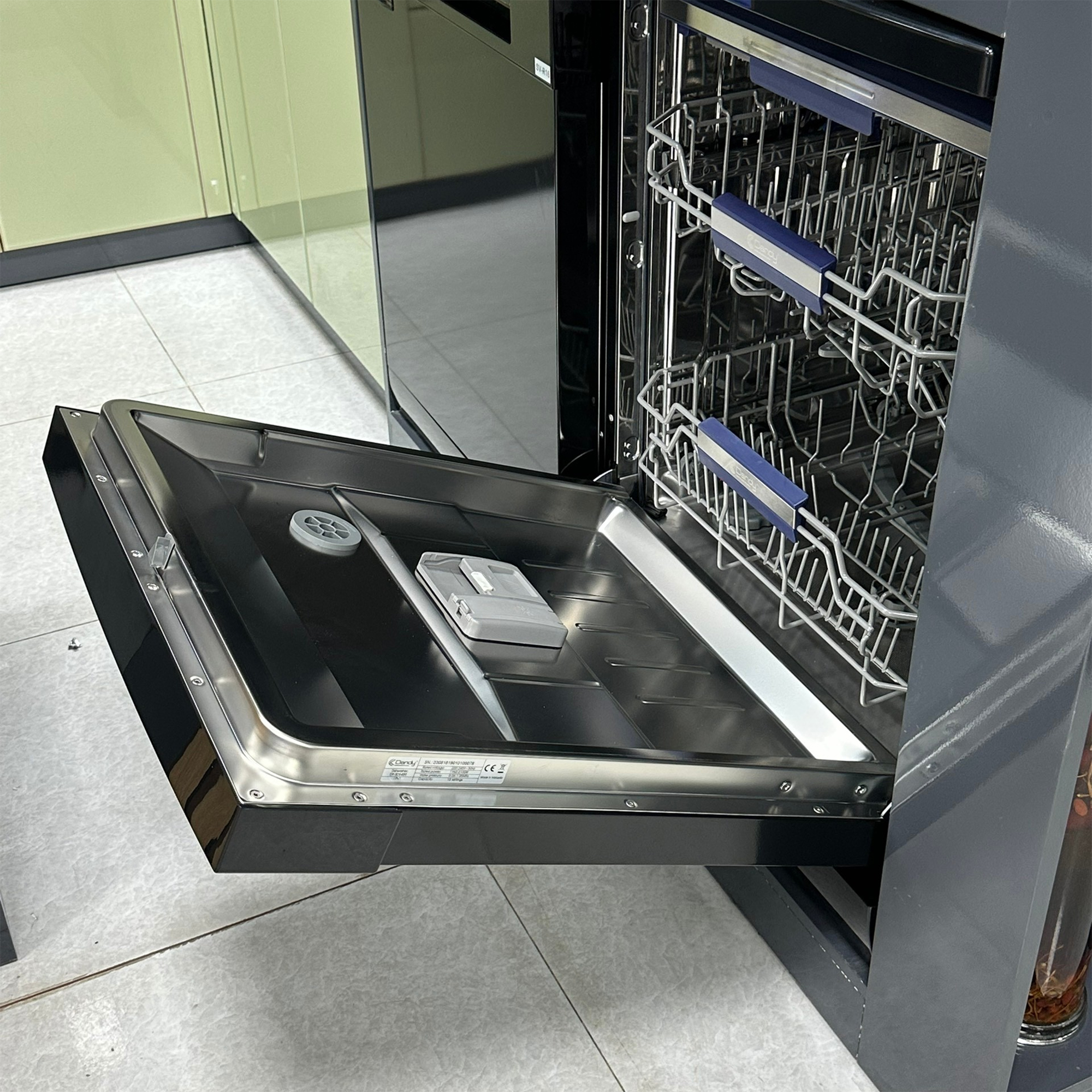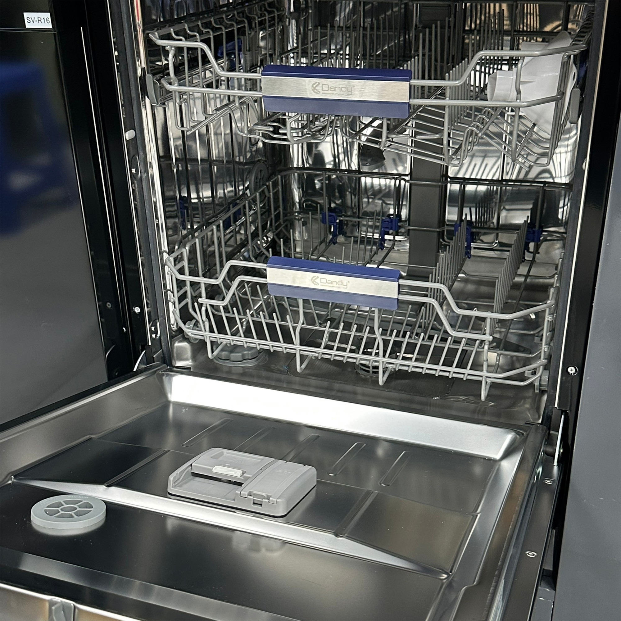 Máy rửa bát Dandy DY-SDS489 trang bị 3 ngăn chứa cơ động. Hệ thống ray nâng hạ thông minh dễ dàng thay đổi chiều cao giữa các khay.
