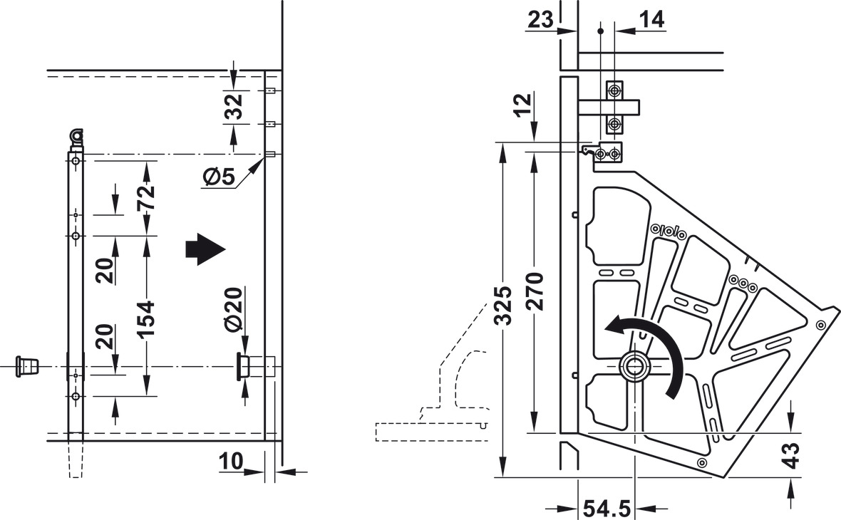 Chiều rộng lắp đặt lọt lòng = kích thước lọt lòng - 25 mm