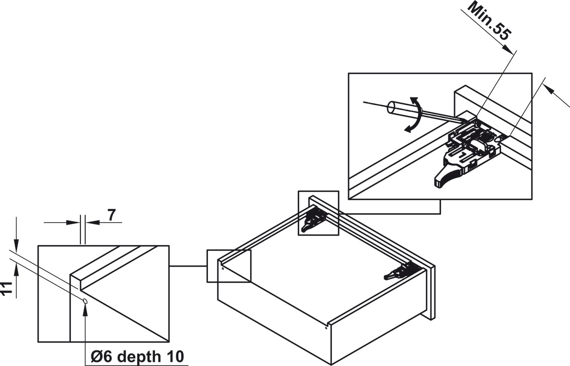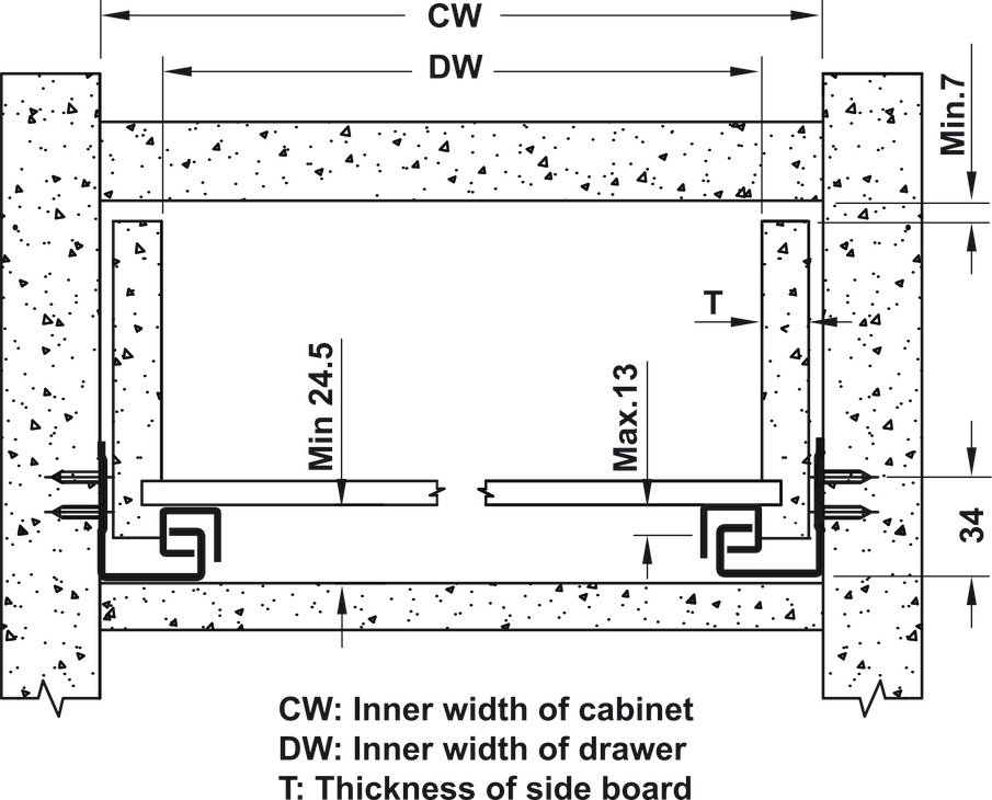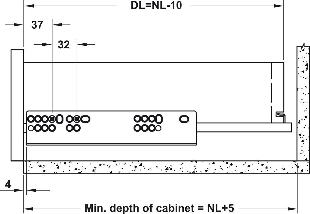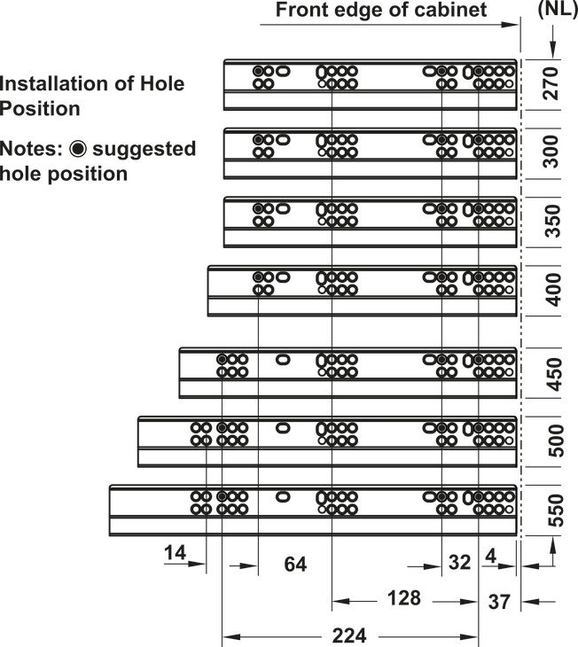 | Mã sản phẩm | Chiều dài ray (mm) | Chiều dài ngăn kéo (mm) | Chiều sâu hộc tủ (mm) |