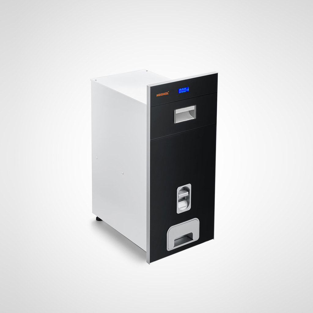 Thùng gạo điện tử mặt kính đen viền nhôm nút nhấn | Garis | Megkel MR06.30BE | 15kg | loại tủ 300mm | thiết kế sang trọng cho không gian bếp tiện nghi