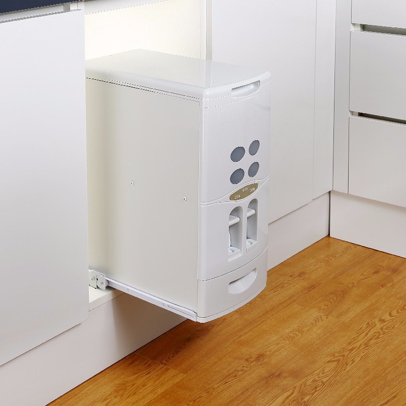 Thùng gạo âm tủ 2 nút nhấn 18kg cánh mở 300mm Newera NE0202E còn có thêm khay lấy gạo nhựa rộng rãi, linh hoạt. Nếu như trước kia thường phải đong gạo bằng ca nên mỗi khi lấy gạo phải cúi người, với tay vào trong thùng và phải đong nhiều lần, như vậy rất bất tiện và vất vả.