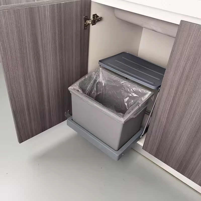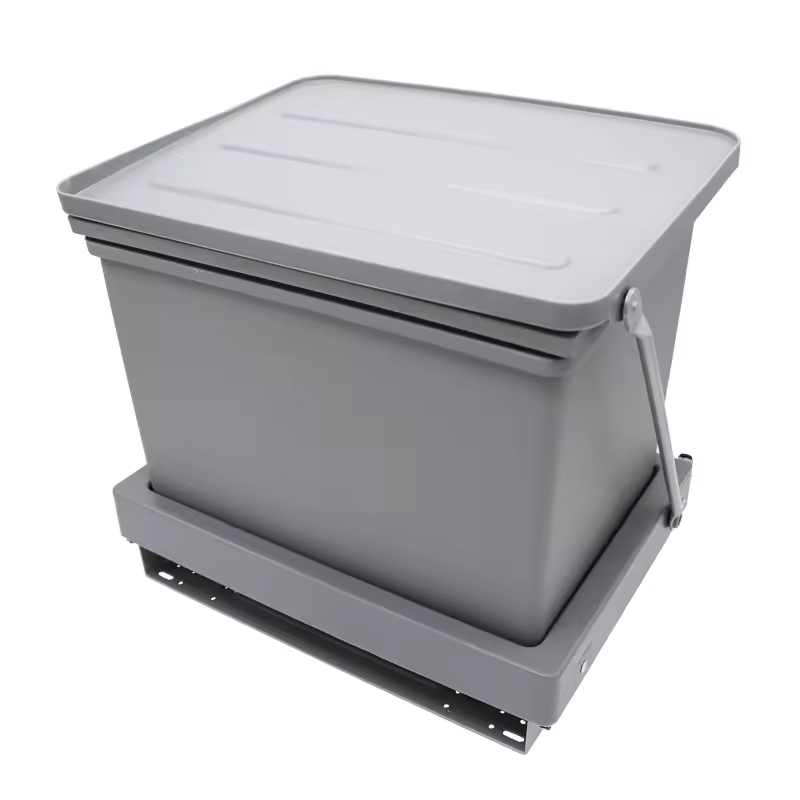Thùng rác âm tủ 1 ngăn màu xám | Eurogold E006 | ERT106 | 16 lít | chiều rộng tủ 400mm | ray bi giảm chấn | lắp âm tủ cánh mở