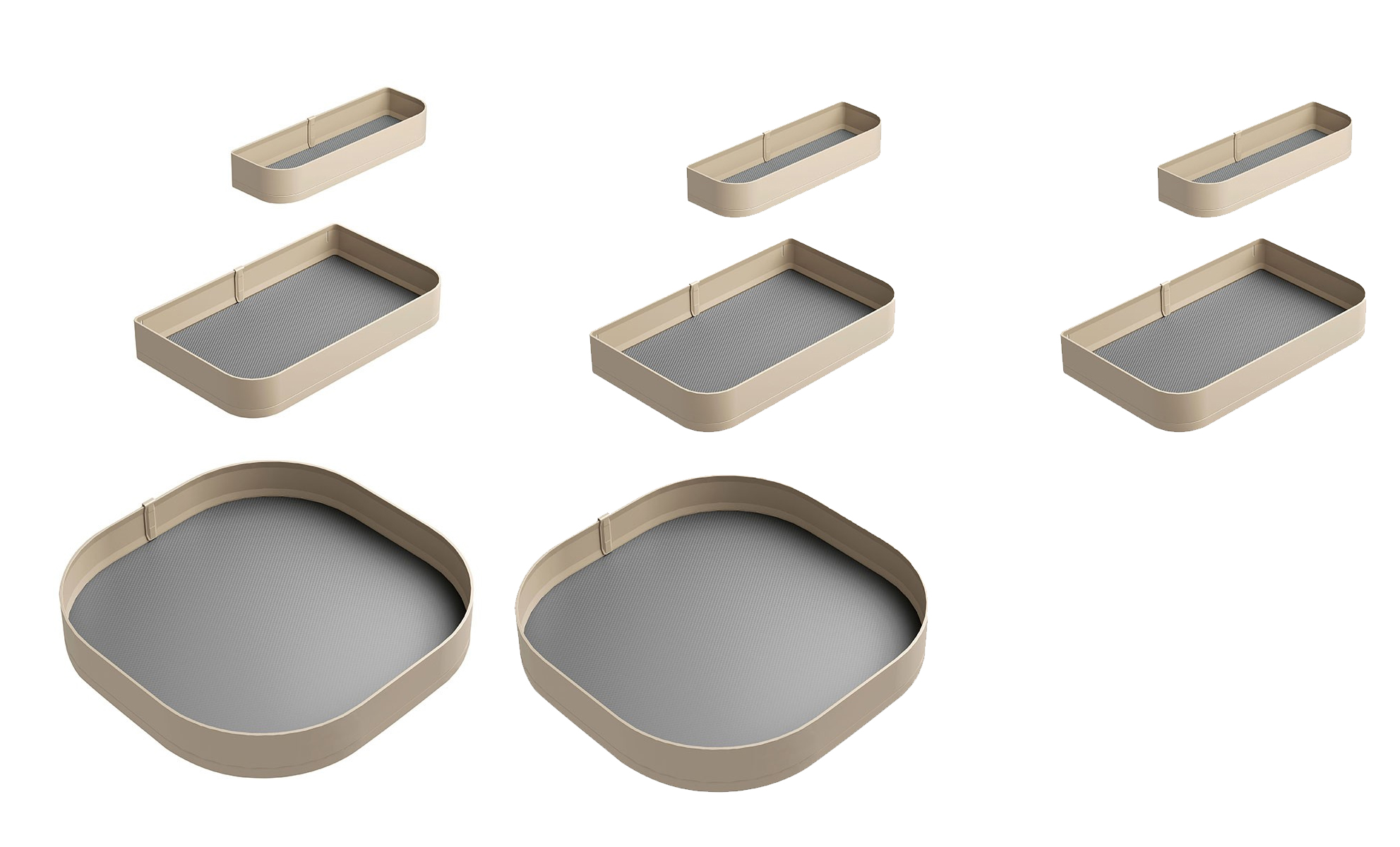 Các khay chứa được thiết kế bo góc thời thượng đồng thời có thể điều chỉnh linh hoạt cho phù hợp với kích thước vật dụng cần lưu trữ, giúp việc lấy và cất đồ bên trong tủ trở nên dễ dàng, thuận tiện. Đặc biệt bề mặt khay được thiết kế tăng ma sát, giúp cố định các chai lọ, chống xô đẩy, đổ vỡ khi đóng, mở tủ.