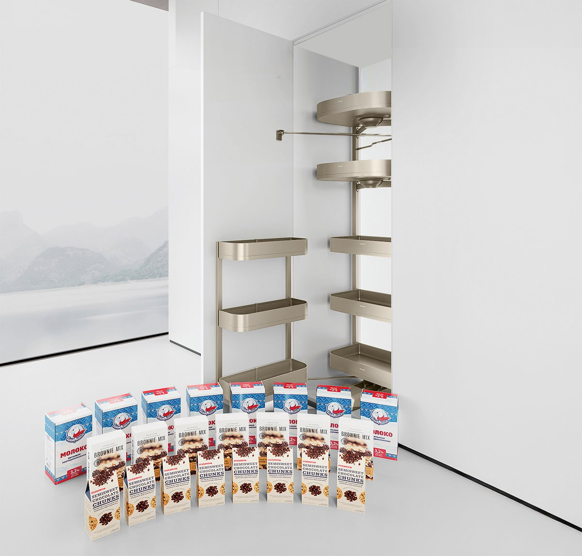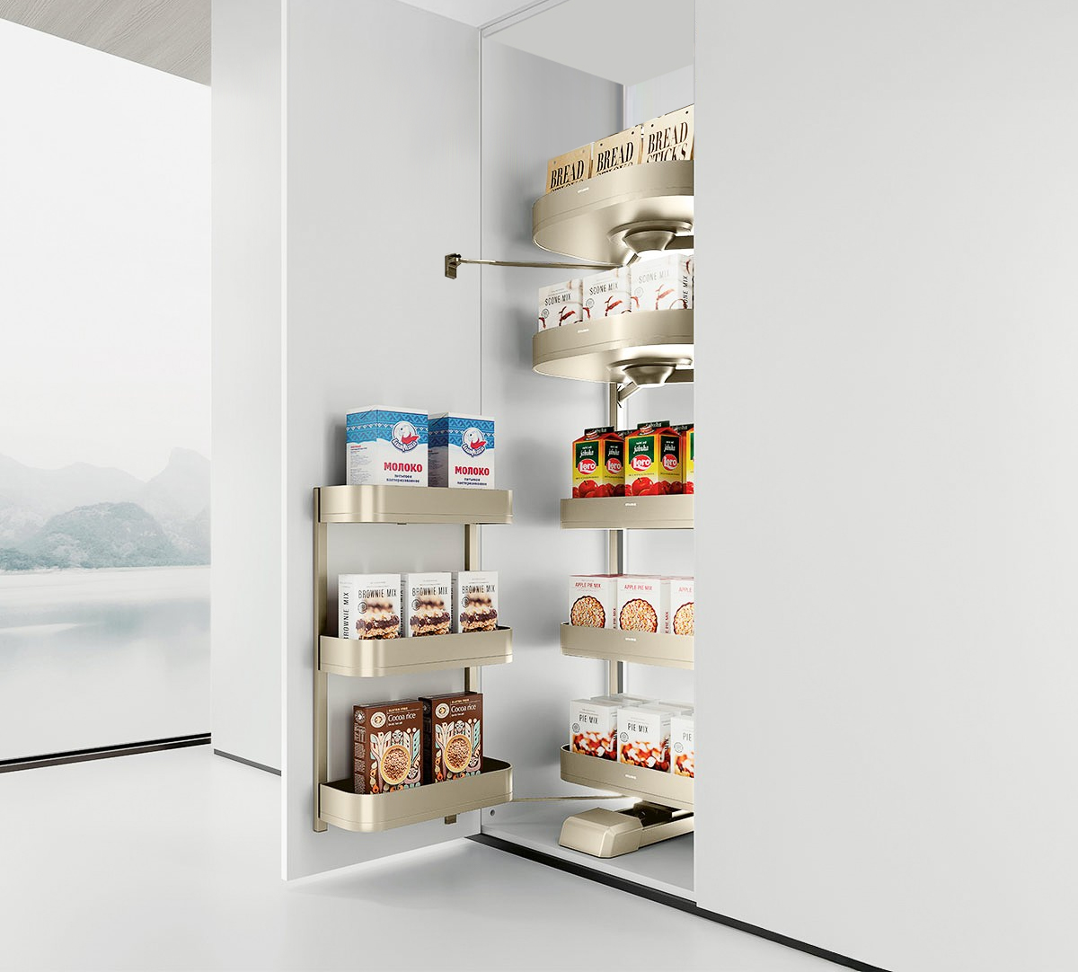 Thiết kế phần rổ đựng dạng hộp góp phần tạo cảm giác nhẹ nhàng, thanh thoát cho tủ kho. Với thiết kế 5 tầng, 8 rổ đựng được thu gọn trong khoang tủ góp phần tăng tính thẩm mĩ, tạo sự gọn gàng cho căn bếp nhà bạn.