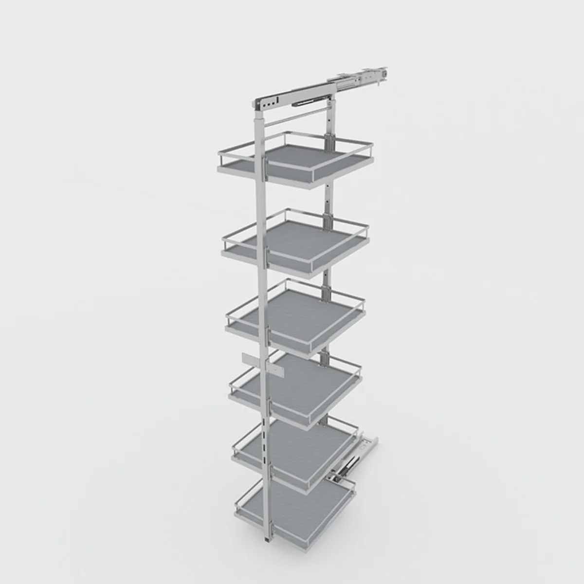 Tủ đồ khô 6 tầng thép phủ Nano cao cấp | Hafele Kara Pull 595.80.803 | lắp âm tủ cánh kéo rút thẳng | chiều rộng tủ 400mm | đáy chống trượt