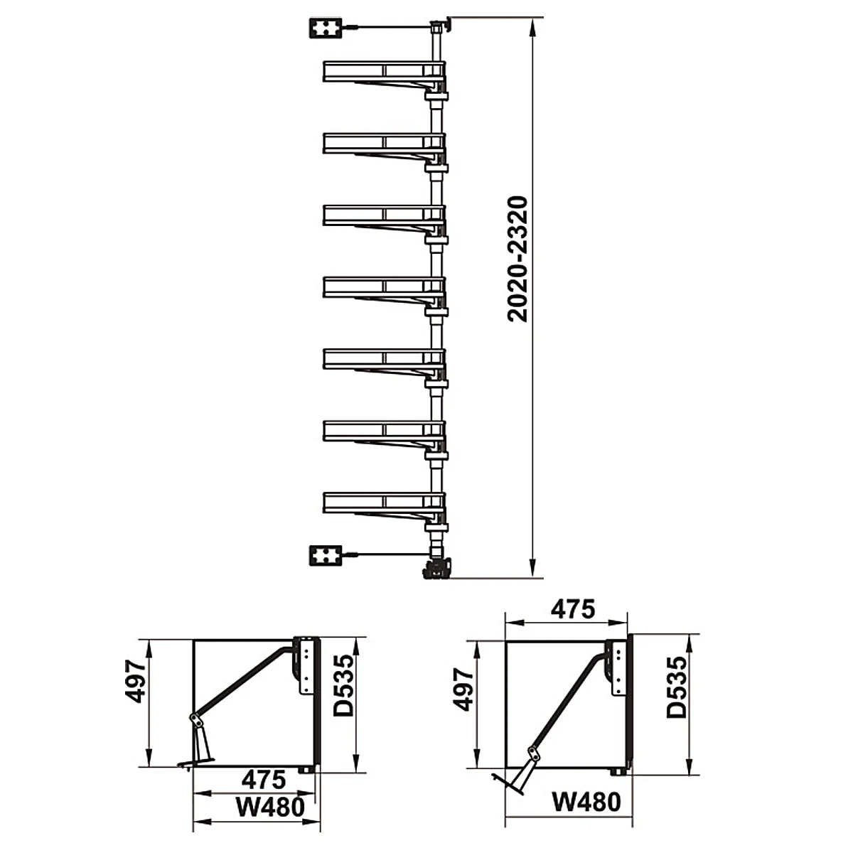 | 595.82.815 (7 tầng) | R480 x S535 x C(2020-2320) | 600 |