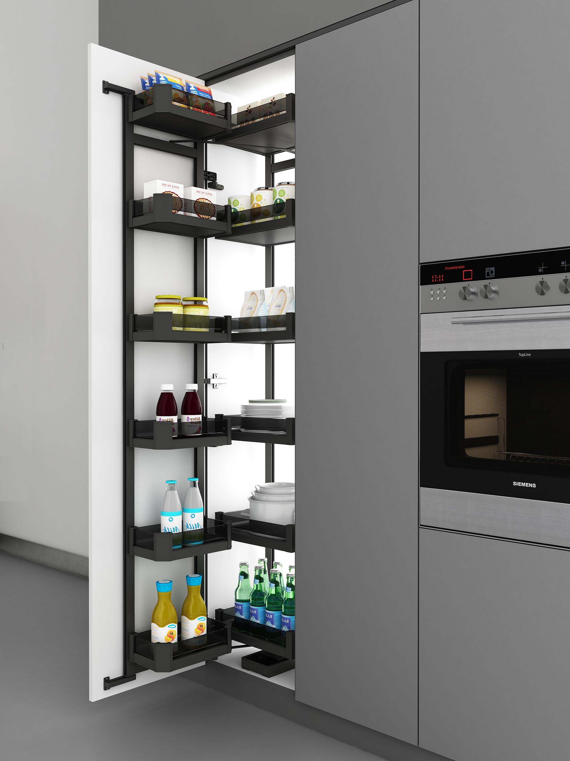 Thay vì xếp đồ đạc một cách không khoa học tạo nên sự bề bộn cho bếp thì tủ kho sẽ đem tới cho bạn sức chứa vô cùng lớn giúp căn bếp luôn sạch sẽ, gọn gàng. Với thiết kế 6 tầng, 12 rổ đựng. bạn có thể tha hồ cất gọn tất cả các vật dùng, đồ ăn.. vào khoang tủ phía sau cánh cửa tủ.