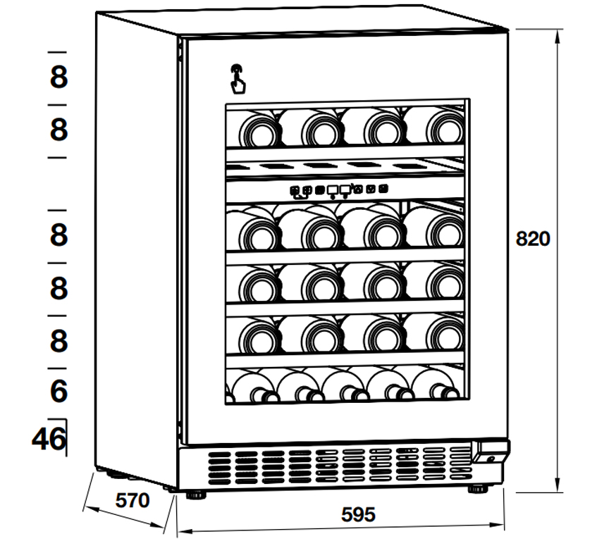 - Sức chứa: 46 chai (loại chai 0.75 lít tiêu chuẩn)
