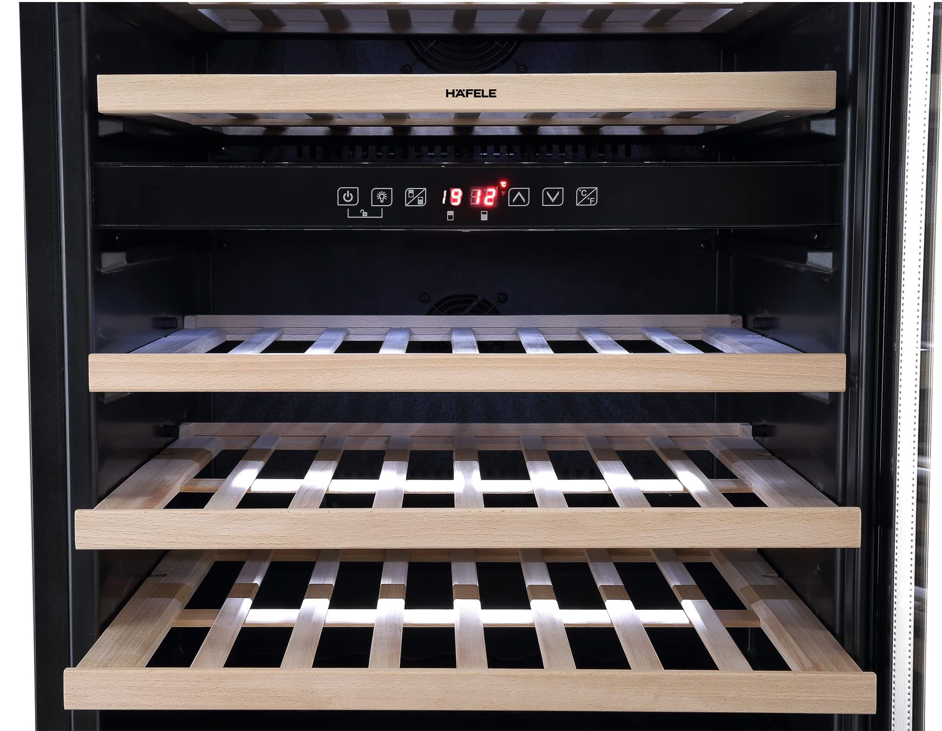 Tủ rượu Hafele HW-C129FB | 533.17.011 được chia thành hai khoang nhiệt độ tách biệt hoàn toàn, được điều khiển độc lập: